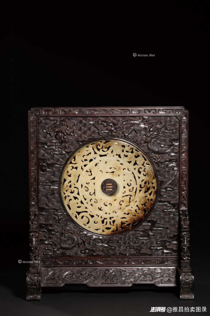 清乾隆 紫檀云龍紋插屏嵌漢螭龍紋璧高42.6cm;估價: JPY 20萬2025-09-08 東京新日本紫垣余韻