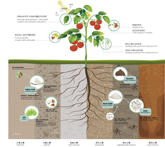在中國西北部,利用生物基復(fù)合材料改良重塑土壤結(jié)構(gòu),戈壁沙漠奇跡般變身保水保肥的耕地。