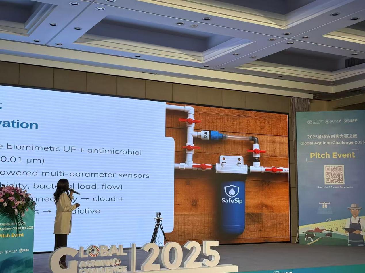 非洲農(nóng)創(chuàng)客Faith Kuya創(chuàng)立的SafeSip公司專注于東非7國的家禽用水安全缺口,她和伙伴們研發(fā)的端到端方案正在解決當(dāng)?shù)厮踩珕栴}。該農(nóng)創(chuàng)項目摘得了本屆大賽唯一金獎。