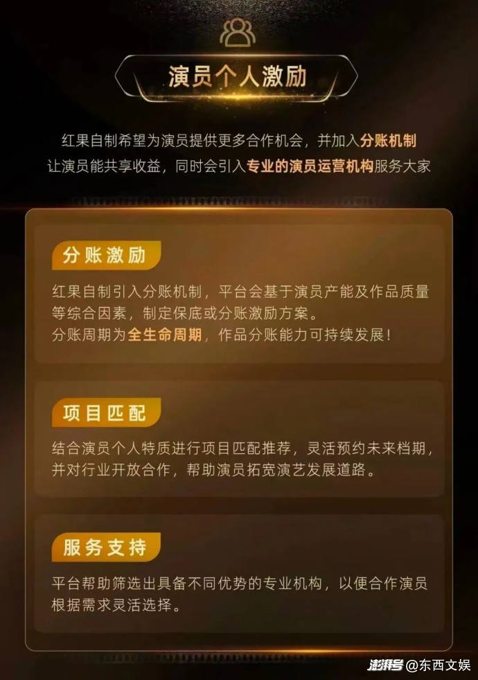 紅果自制此次也同步宣布將引入演員運(yùn)營(yíng)機(jī)構(gòu),將通過(guò)一系列激勵(lì)措施,鼓勵(lì)演員合作機(jī)構(gòu)機(jī)構(gòu)服務(wù)好演員。