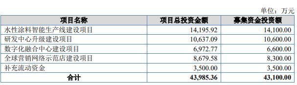 此次募投的重頭戲之一是投入1.41億元建設(shè)“水性涂料智能生產(chǎn)線”。