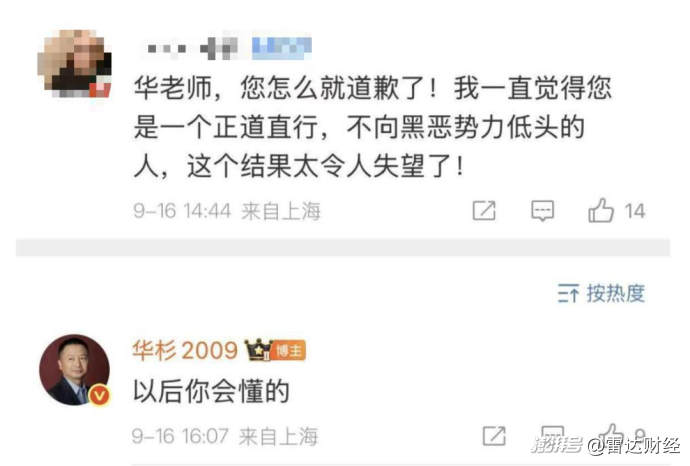據(jù)三言科技,9月16日,還有網(wǎng)友就華與華道歉一事評(píng)論稱(chēng),“華老師,您怎么就道歉了!我一直覺(jué)得您是一個(gè)正道直行,不向黑惡勢(shì)力低頭的人,這個(gè)結(jié)果太令人失望了!”對(duì)此,華杉回復(fù)道,“以后你會(huì)懂的?!?/p>
