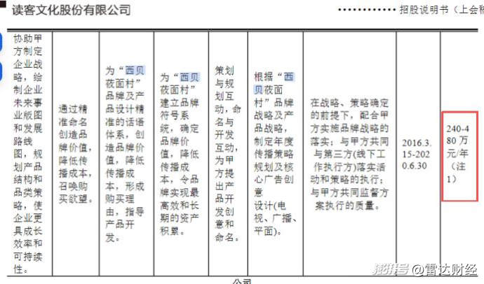 此外,雷達(dá)財(cái)經(jīng)注意到,由華杉、華楠實(shí)控的上市公司讀客文化也曾在招股書(shū)中披露,西貝和華與華簽訂的合同金額為240萬(wàn)元至480萬(wàn)元/年,服務(wù)期為2016年3月15日到2020年6月30日。