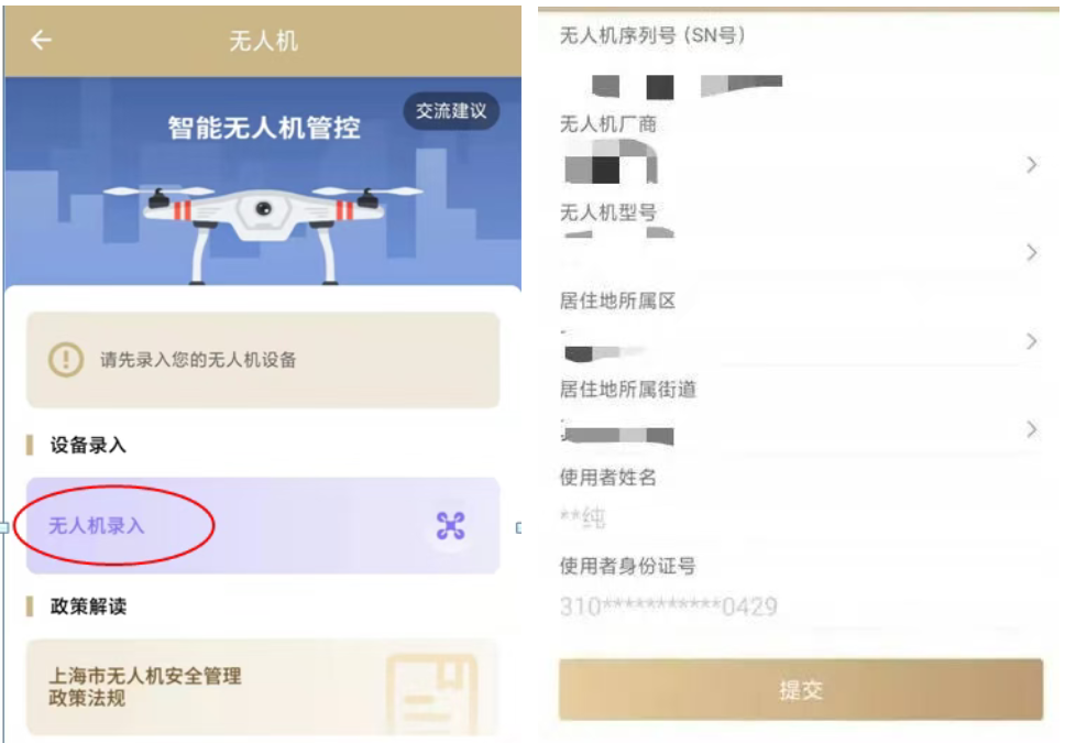 點擊“無人機錄入”→依次填入無人機信息并點擊提交即可。