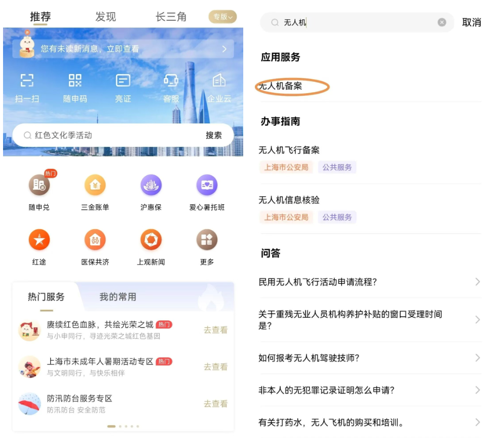 更多“無人機”相關(guān)服務(wù),上“隨申辦市民云”APP即可在線辦理