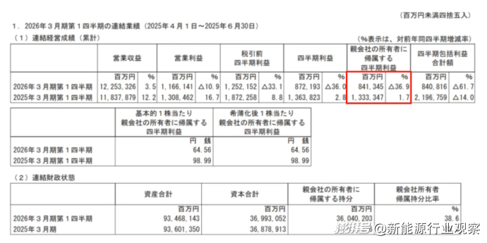 圖/2025年4-6月豐田財(cái)報(bào)部分?jǐn)?shù)據(jù)