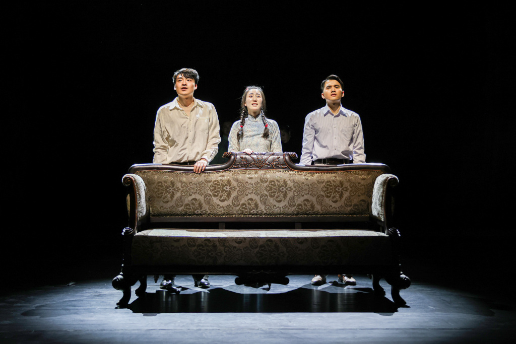 王俊淇(左)飾演周萍、陳紅旭(中)飾演四鳳、李京旭(右)飾演周沖。攝影:李春光