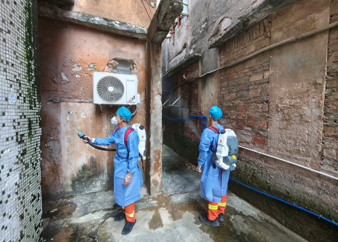 △在接受專業(yè)的藥劑配比和消殺流程培訓后,全體人員編成五個小組,立即分赴居民區(qū)、農(nóng)貿(mào)市場、閑置地塊、公園廣場、垃圾中轉(zhuǎn)站等重點區(qū)域。圖源 肇慶人民城管