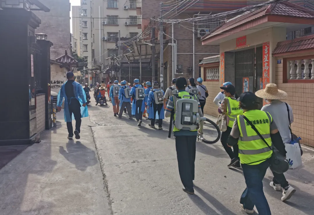 △近日,由市城管局牽頭組建的市級防控蟲媒傳染病消殺應(yīng)急隊伍前往四會市,開展集中滅蚊防疫專項行動。圖源 肇慶人民城管