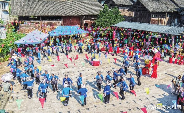 10月9日,吉首市丹青鎮(zhèn)大興村,村民在表演《跳香舞》。當(dāng)天,該村舉辦以“慶豐收·展新貌”為主題的百姓文藝匯演,來自當(dāng)?shù)睾拖噜彺逭娜核囮犖閹碜跃幾匝莸膹V場舞、民歌演唱、非遺展演等精彩節(jié)目,分享豐收的喜悅。姚方 張德平 攝