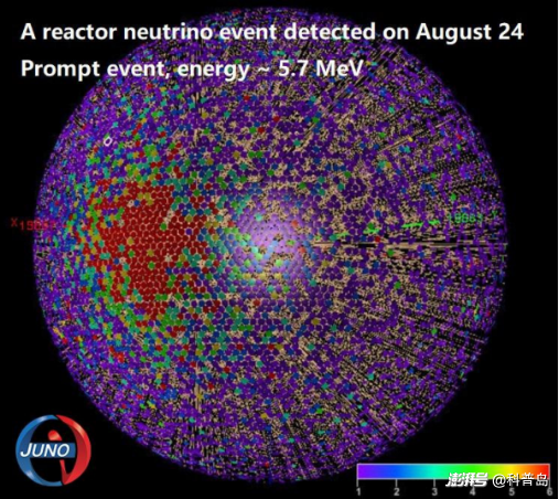 JUNO探測到的一個反應(yīng)堆中微子事例 來源:中國科學(xué)院高能物理研究所