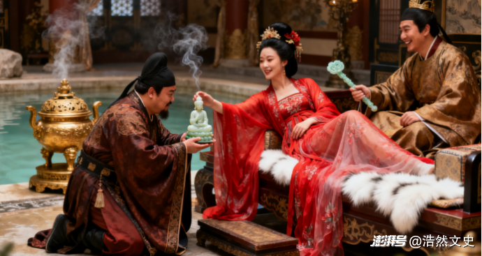 再比如,當(dāng)時(shí)楊貴妃圣眷正濃,年近半百的安祿山竟然跑去認(rèn)了不到三十歲的楊貴妃當(dāng)“干媽”,這無疑是抱上了更粗的“大腿”。接著在一次拜見皇帝夫婦的場合,他先對(duì)楊貴妃行禮,后拜見皇帝。唐玄宗感到很奇怪,安祿山則回答:“我是胡人嘛,沒有文化也不懂朝廷的規(guī)矩。在我們那兒,都是先拜見母親再拜見父親的!”皇帝和貴妃聽完這番話,果然又一次非常高興。