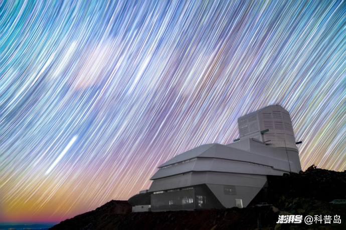 長曝光鏡頭下,智利帕穹山之巔,魯賓天文臺靜靜矗立,背后是斗轉星移繪就的璀璨星軌。(來源:魯賓天文臺官網)