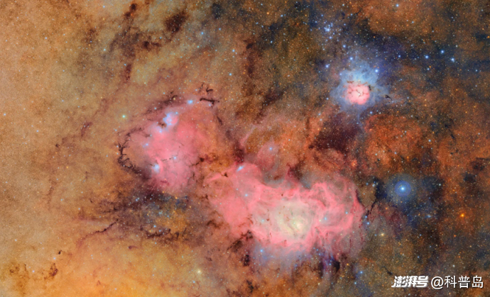 這張圖片在短短七個多小時由拍攝的678張獨立圖像合成。通過這種圖像合并的方式,可以清晰地揭示出那些原本暗淡或不可見的細節(jié),例如構成三葉星云(位于右上方)和礁湖星云(位于下方中部)的氣體和塵埃云,而這兩個星云距離地球有數(shù)千光年之遙。(來源:魯賓天文臺官網)