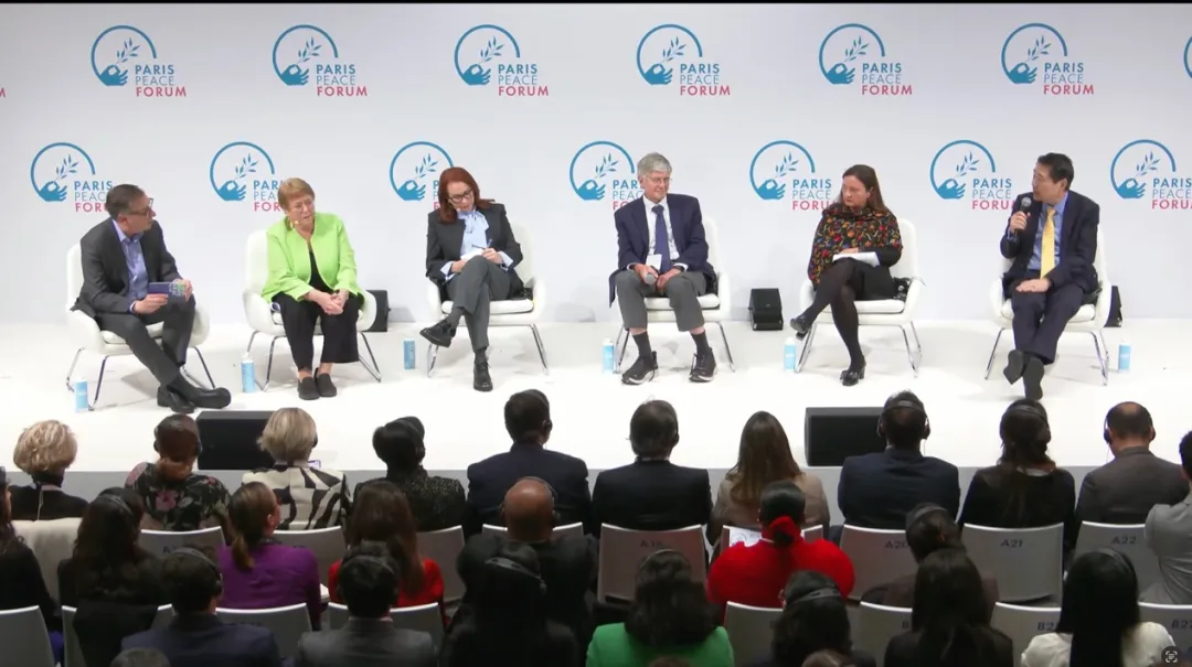 論壇開始首先進(jìn)行開幕式環(huán)節(jié),本屆巴黎和平論壇開幕式以“為和平、人民與地球構(gòu)建新型聯(lián)盟(New Coalitions for Peace, People and the Planet)”為核心主題,在主舞臺(tái)(Stage A)正式拉開為期兩天的論壇議程。開幕式主講嘉賓包括:聯(lián)合國前人權(quán)事務(wù)高級(jí)專員、智利前總統(tǒng)米歇爾·巴切萊特(Michelle Bachelet);巴黎和平論壇主席、經(jīng)濟(jì)合作與發(fā)展組織(OECD)前秘書長(zhǎng)安赫爾·古里亞(ángel Gurría);巴黎和平論壇創(chuàng)始人兼總干事賈斯汀·瓦伊斯(Justin Va?sse)。古里亞指出,當(dāng)今世界正面臨自二戰(zhàn)以來最為復(fù)雜的地緣政治與人道主義危機(jī)——從烏克蘭與中東的沖突到非洲動(dòng)蕩、氣候變化、債務(wù)危機(jī)與信息失真,全球治理體系亟需重塑。他呼吁以“新的聯(lián)盟、勇敢的伙伴關(guān)系,以及跨越南北、東西、公私界限的合作勇氣”來應(yīng)對(duì)分裂與不信任。巴切萊特強(qiáng)調(diào),人類正處于前所未有的考驗(yàn)時(shí)刻,和平不僅是沖突的缺席,更是信任、對(duì)話與正義的存在,呼吁以包容且現(xiàn)實(shí)的多邊主義應(yīng)對(duì)全球挑戰(zhàn)。開幕式最后,瓦伊斯宣布論壇正式開幕,并邀請(qǐng)與會(huì)者圍繞“為和平、人民與地球構(gòu)建新型聯(lián)盟”主題展開深入討論,呼吁通過建設(shè)性對(duì)話與務(wù)實(shí)合作重建國際信任,共同塑造一個(gè)更加公正、可持續(xù)與和平的世界。