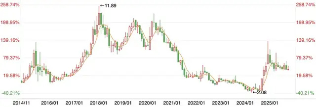 ▲永輝超市近11年股價(jià)走勢(shì)圖,月K線