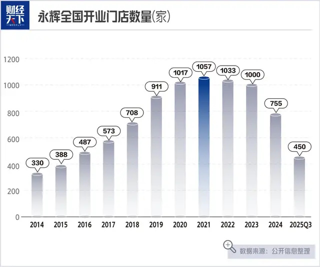 與業(yè)績大幅下滑相對(duì)應(yīng)的是門店數(shù)量持續(xù)萎縮,截至9月末,永輝超市全國門店數(shù)量僅剩450家,相比巔峰時(shí)期的1057家大幅減少,相當(dāng)于回到了大幅擴(kuò)張前的水平。