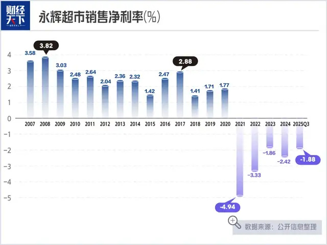 最新財(cái)報(bào)顯示,永輝超市2025年第三季度營業(yè)收入124.86億元,同比下滑25.55%,歸母凈虧損達(dá)4.69億元,同比擴(kuò)大超三成。