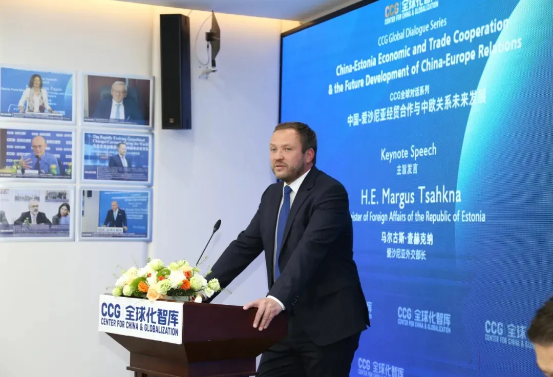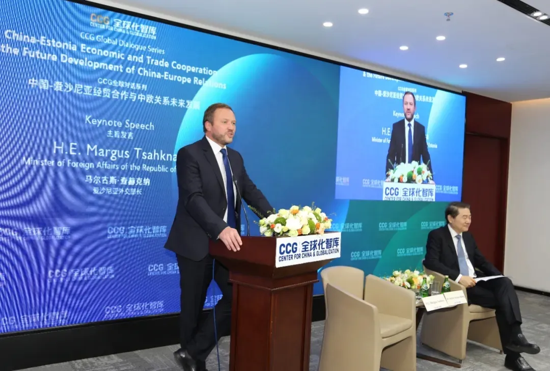 2025年11月4日上午,愛沙尼亞外交部長馬爾古斯·查赫克納到全球化智庫(CCG)參加“中國——愛沙尼亞經(jīng)貿(mào)合作與中歐關(guān)系未來發(fā)展”活動時發(fā)表演講,并與CCG創(chuàng)始人兼理事長王輝耀對話交流。