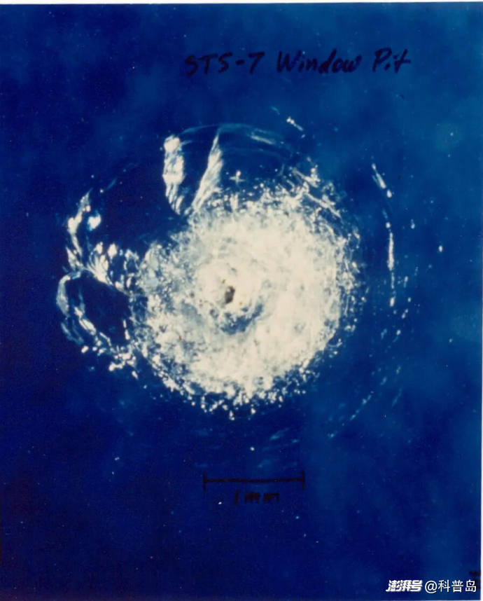 由于沙粒大小的太空垃圾所產(chǎn)生的沖擊與每小時160千米的保齡球相當,所以直徑在幾毫米以下的小的空間碎片就能對運營中的航天器造成損壞。這種損害分為兩類,第一類是對航天器分系統(tǒng)表面的損害,第二類是對航天器運行的影響。比如,美國航天飛機的窗戶就曾遭受空間碎片的撞擊。