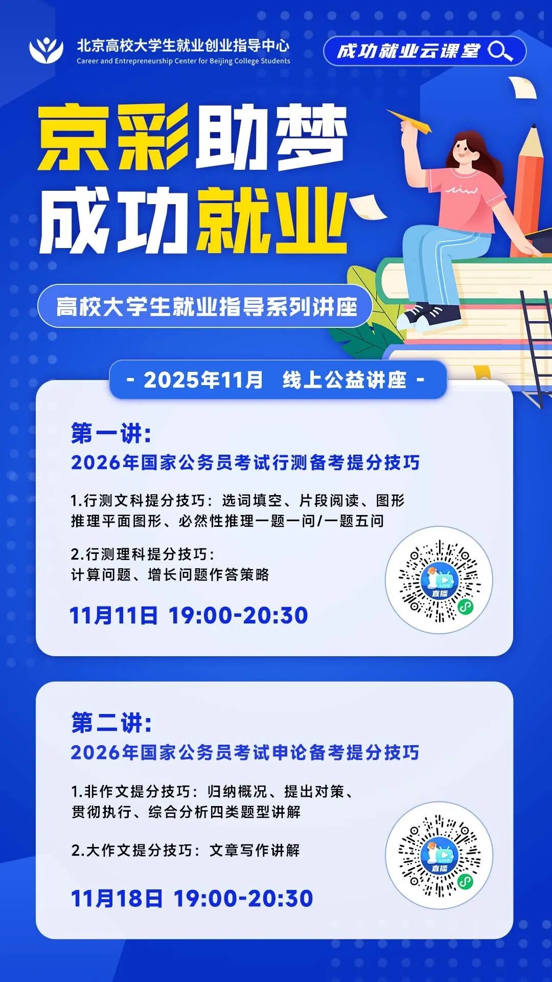 “京彩助夢(mèng) 成功就業(yè)”--本月兩場(chǎng)公益課:2026年國(guó)家公務(wù)員考試行測(cè)備考提分技巧、申論備考提分技巧