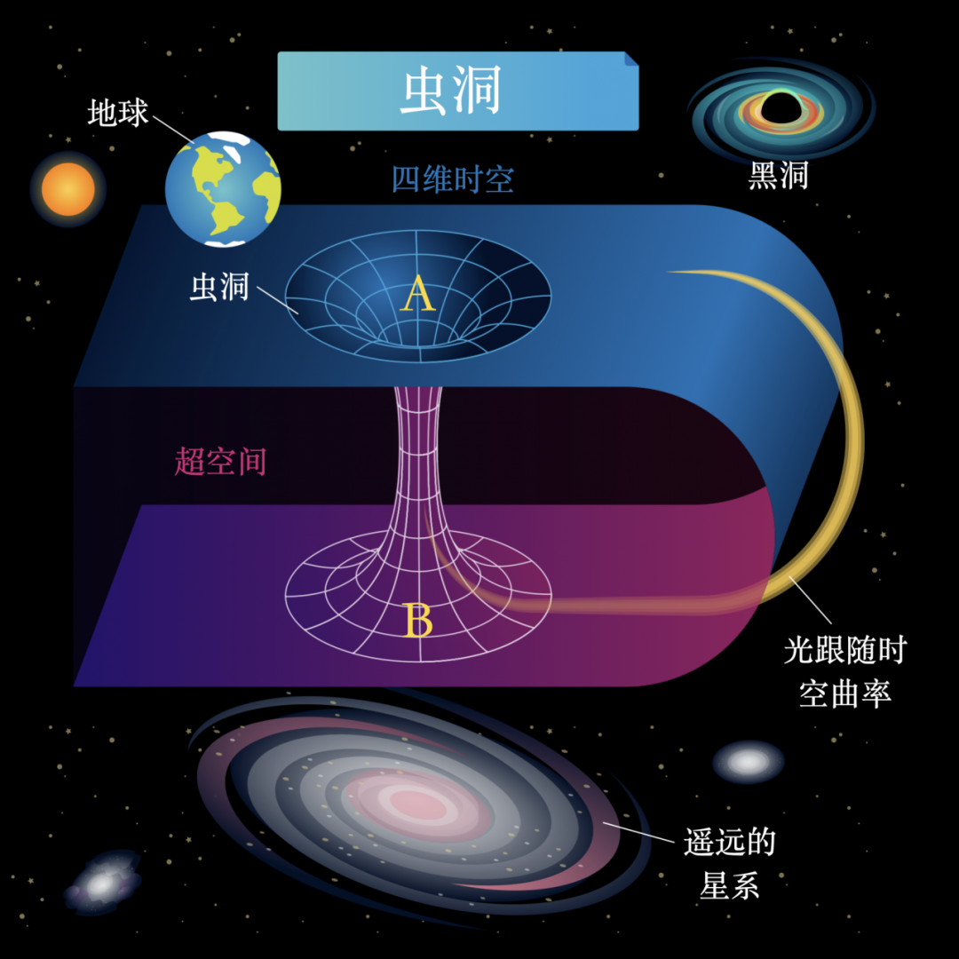 蟲洞示意圖在物理界,這一概念被譽為宇宙中的“捷徑”,通過它,物體能夠瞬間實現(xiàn)時空的跨越,也就是我們在不少影視作品和科幻作品中看到的時間旅行。