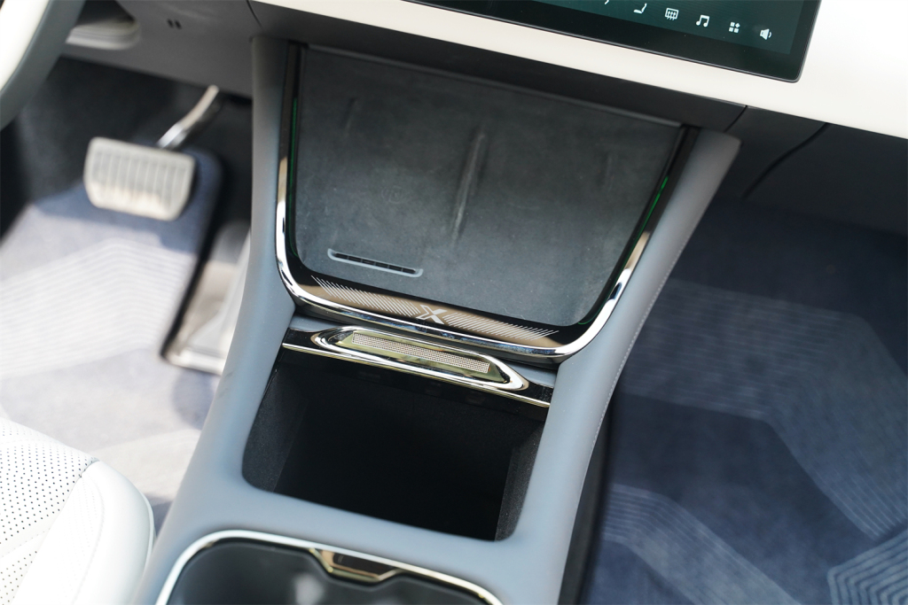 座艙內(nèi)部的變化微妙但務(wù)實。老款車型上可前后滑動的“魔術(shù)島臺”被固定式設(shè)計所取代。新的中控島臺設(shè)置了雙手機位、更大的儲物格以及可穩(wěn)妥放置水瓶和奶茶杯的杯架,日常使用的便利性顯著提升。