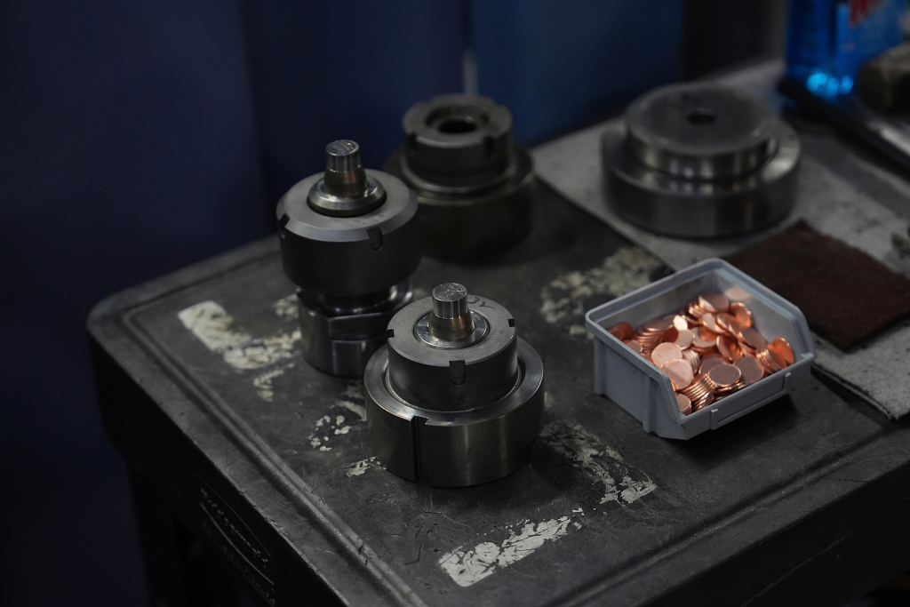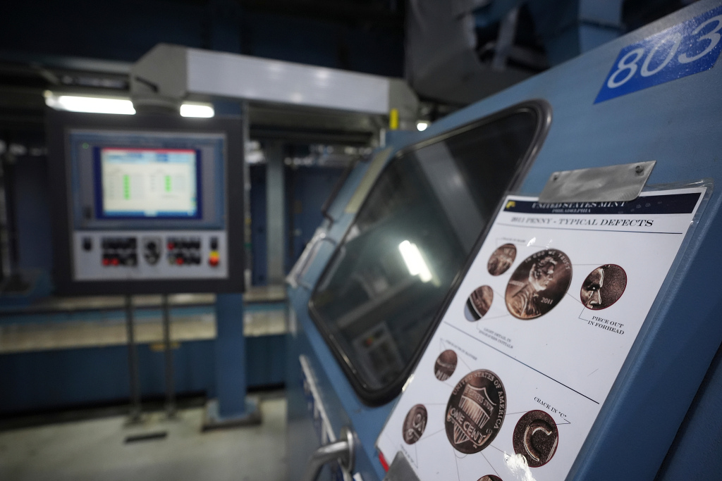 當地時間2025年11月12日,費城,美國鑄幣局將壓制最后一批一美分硬幣,模具和空白硬幣將成為這批硬幣的最終成品。視覺中國 圖