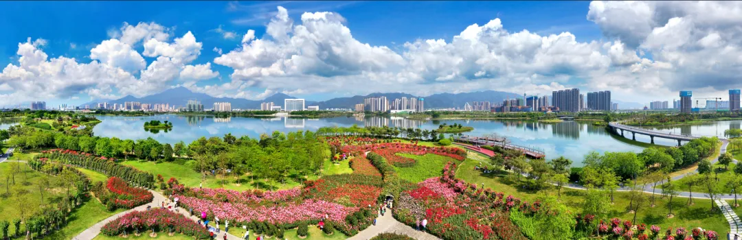 48米高的粉色摩天輪“硯陽之眼”緩緩旋轉(zhuǎn),四季不謝的月季島暈染絢爛,