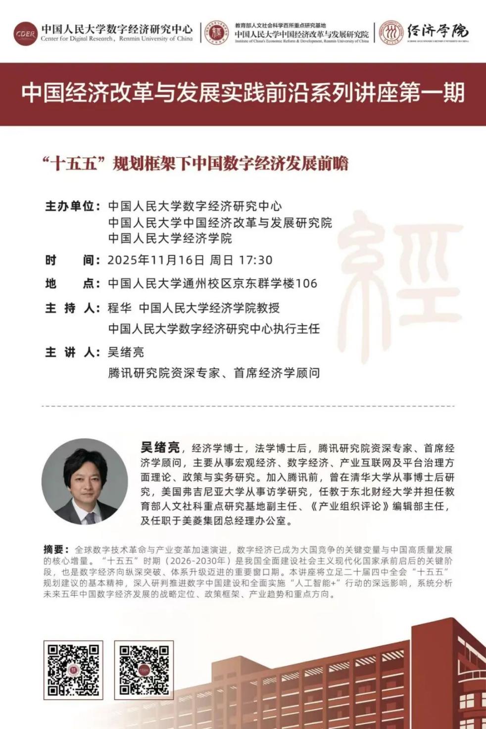 主辦:中國人民大學(xué)數(shù)字經(jīng)濟研究中心、中國人民大學(xué)中國經(jīng)濟改革與發(fā)展研究院、中國人民大學(xué)經(jīng)濟學(xué)院