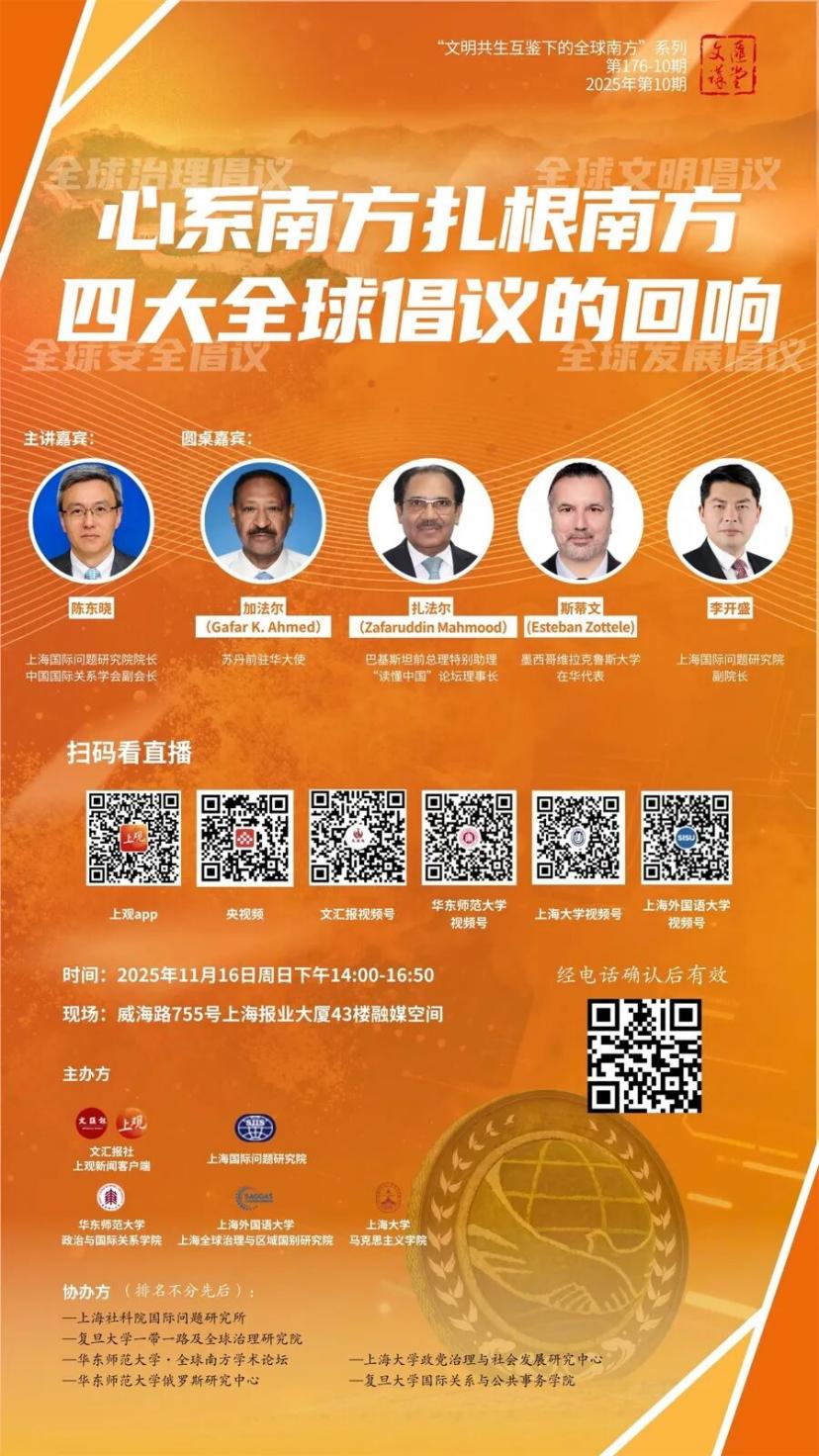 主辦:文匯報、上海國際問題研究院、華東師范大學(xué)政治與國際關(guān)系學(xué)院、上海外國語大學(xué)上海全球治理與區(qū)域國別研究院、上海大學(xué)馬克思主義學(xué)院