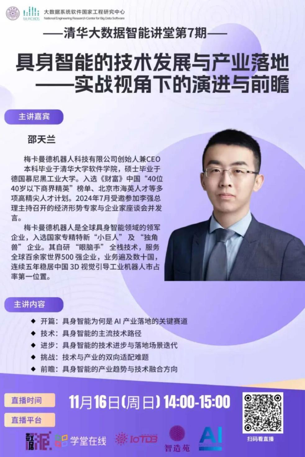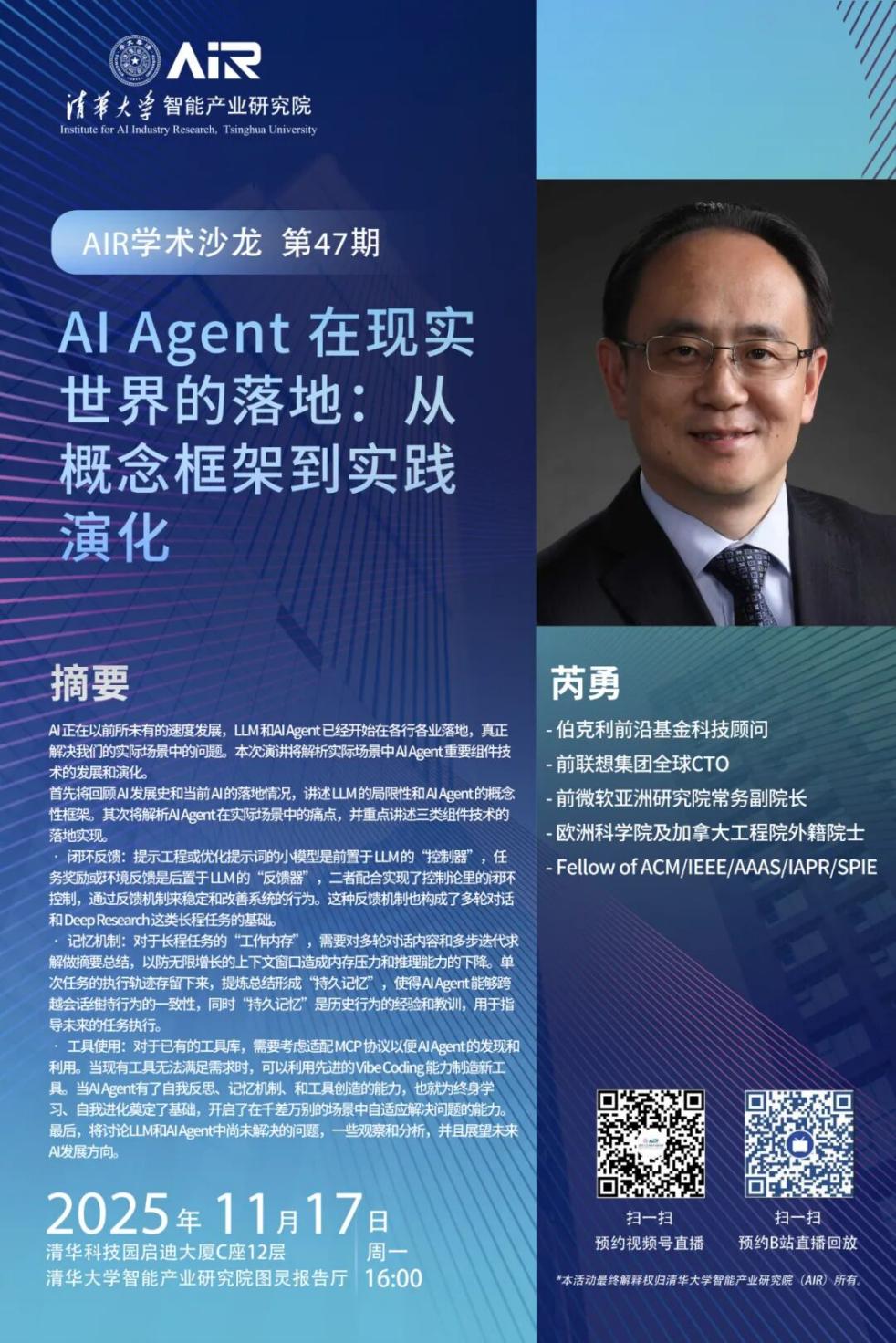 參與方式:清華大學(xué)智能產(chǎn)業(yè)研究院圖靈報告廳或掃碼觀看