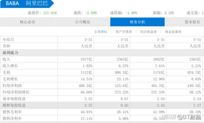 阿里近期發(fā)布的2025一季報(bào),營(yíng)收2477億元,同比增長(zhǎng)1.82%,凈利潤(rùn)406.5億元,同比增長(zhǎng)66.66%。營(yíng)收只有不到2%的增長(zhǎng),放緩速度同樣明顯。而66.66%的凈利潤(rùn)增長(zhǎng),如果把高鑫零售和銀泰這些“已處理完的家當(dāng)”搬出去,阿里的主營(yíng)表現(xiàn)還算不俗,同比增長(zhǎng)10%。