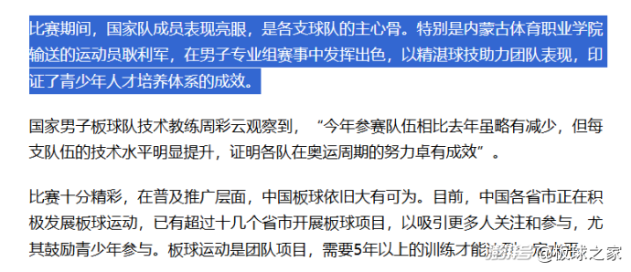 據(jù)上觀新聞在今年8月9日發(fā)表的《2025年全國(guó)板球錦標(biāo)賽落幕,上海見證這項(xiàng)運(yùn)動(dòng)在中國(guó)悄然煥新甚至換個(gè)活法》一文中指出:“比賽期間,國(guó)家隊(duì)成員表現(xiàn)亮眼,是各支球隊(duì)的主心骨。特別是內(nèi)蒙古體育職業(yè)學(xué)院輸送的運(yùn)動(dòng)員耿利軍,在男子專業(yè)組賽事中發(fā)揮出色,以精湛球技助力團(tuán)隊(duì)表現(xiàn),印證了青少年人才培養(yǎng)體系的成效。”