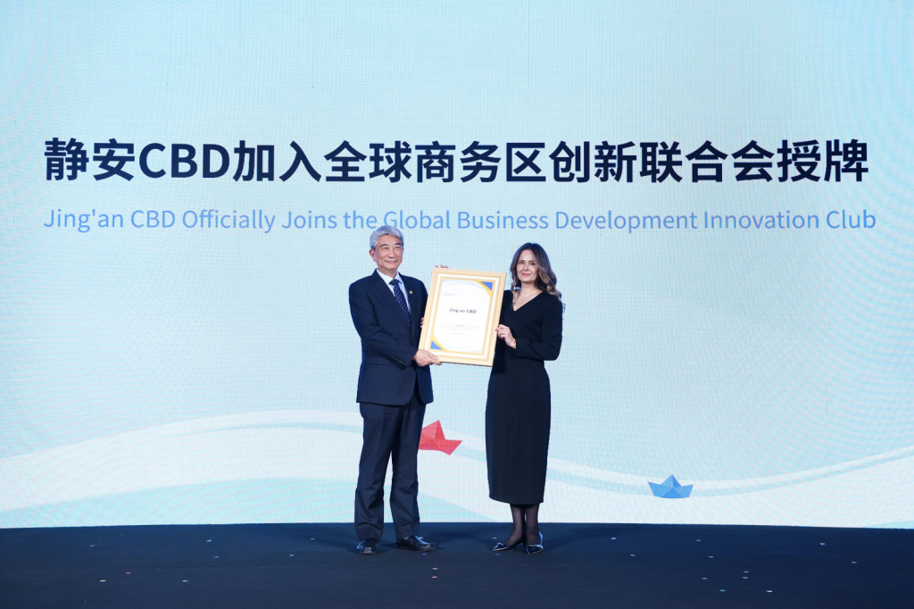 全球商務區(qū)創(chuàng)新聯(lián)合會秘書長朱莉亞·索羅多瓦(Julia Solodova)向上海市靜安區(qū)政協(xié)主席丁寶定正式授牌