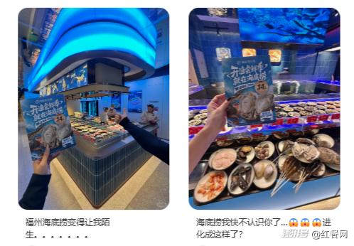 今年初,海底撈在福建開設(shè)首家海鮮主題門店,店內(nèi)設(shè)有明檔水產(chǎn)池,提供蟶、沼蝦、黑虎蝦、生蠔、鮑魚、紅螺、小青龍、帶子、青口貝等鮮活海鮮。