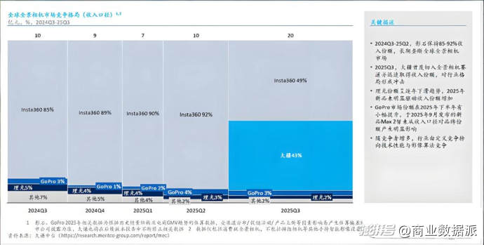 2024年以前,影石憑借硬件專利、軟件生態(tài)和UGC社區(qū)構(gòu)建的“護(hù)城河”,長期壟斷85%以上的市場(chǎng)份額,GoPro、理光等品牌只能在細(xì)分領(lǐng)域掙扎。