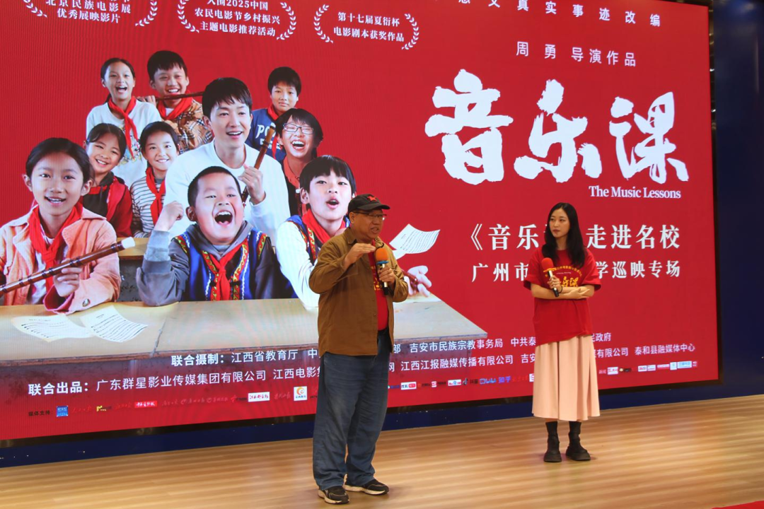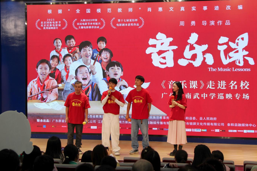 11月14日晚,廣東群星影業(yè)傳媒集團、江西電影集團、南方網(wǎng)、廣東喜馬拉雅影業(yè)有限公司等江西、廣東兩地公司出品,根據(jù)“全國最美教師”——江西泰和縣水槎鄉(xiāng)中心小學(xué)老師肖惠文事跡改編,被觀眾稱之為“五好電影”,榮獲2025年北京民族電影展“優(yōu)秀展映影片”(好笑、好哭、好真、好暖、好美”)的《音樂課》在繼廣州舉辦首映式之后,周勇導(dǎo)演又攜電影《音樂課》主創(chuàng)團隊走進廣州市南武中學(xué)進行巡映活動。