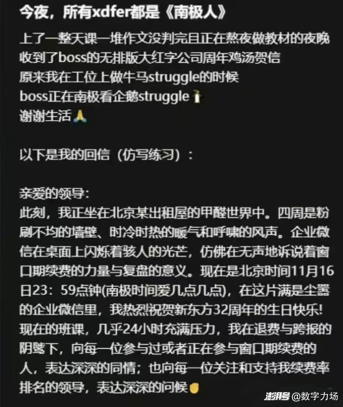 此刻我站在南極的冰原上,手機信號斷斷續(xù)續(xù),但心里一直惦記著北京辦公室的燈光。我知道,當(dāng)我在這里看企鵝搖搖晃晃走路時,你們可能正為一個方案、一個數(shù)據(jù)、一個客戶的反饋,在工位上奮戰(zhàn)到深夜。所以這封信,我不想談什么“冰雪中的堅守”,只想說一句:辛苦了,我懂你們的不容易。
