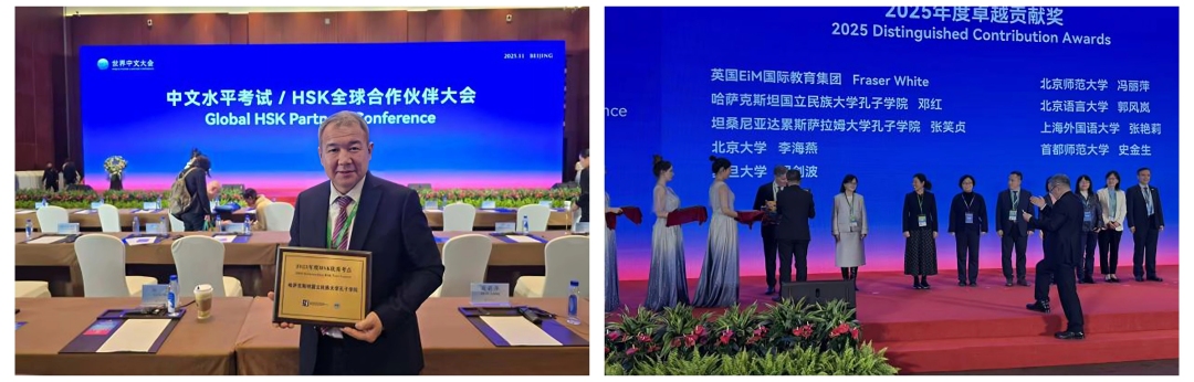 阿里·法拉比哈薩克國(guó)立大學(xué)孔子學(xué)院憑借在考試組織與推廣方面的卓越表現(xiàn),連續(xù)第三年榮膺“HSK優(yōu)秀考點(diǎn)”稱號(hào)。中方院長(zhǎng)鄧紅也因在推動(dòng)中哈語(yǔ)言文化交流、拓展中文教學(xué)項(xiàng)目等方面的杰出工作,榮獲2025年度“卓越貢獻(xiàn)獎(jiǎng)”,充分彰顯了我校共建孔院在海外扎實(shí)的辦學(xué)基礎(chǔ)與廣泛的社會(huì)影響力。