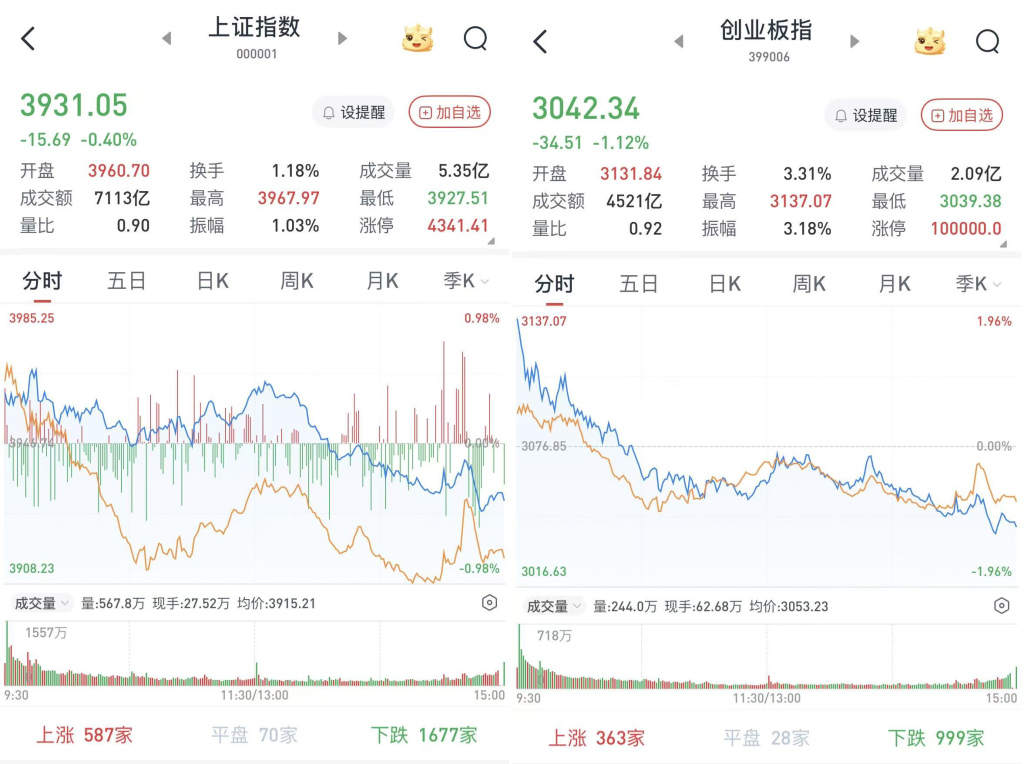 至收盤,上證綜指跌0.4%,報3931.05點;科創(chuàng)50指數(shù)跌1.24%,報1328.19點;深證成指跌0.76%,報12980.82點;創(chuàng)業(yè)板指跌1.12%,報3042.34點。
