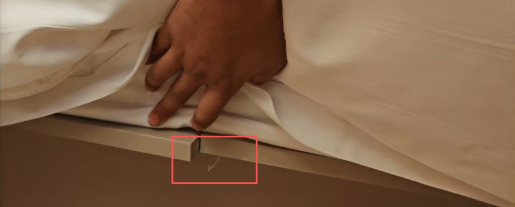 “我和服務(wù)員站在床與電視之間忙活,孩子在旁邊找媽媽,突然就摔了下去。”王先生說,自己的女兒僅有7歲,摔倒后哭得撕心裂肺,他趕忙將孩子扶起,看到她額頭破了個大口子,“我拉起床單才發(fā)現(xiàn),床尾那里有一個尖銳物?!?/p>