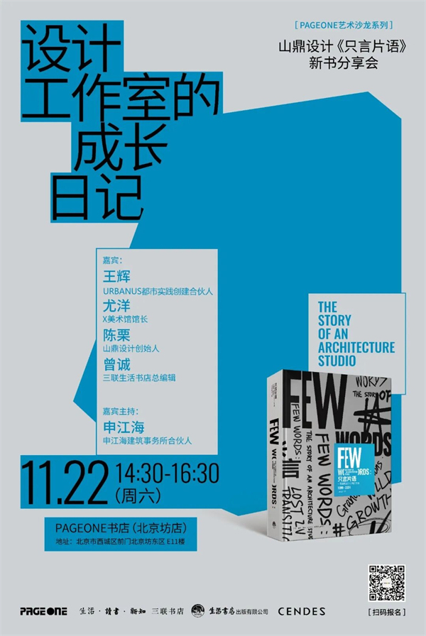 《只言片語:一家建筑設(shè)計(jì)公司的故事》是由山鼎設(shè)計(jì)創(chuàng)作的一部書,一部關(guān)于設(shè)計(jì)故事的作品,也是一部關(guān)于理想、困境與選擇的紀(jì)實(shí)寫作。11月22日,我們誠邀您參加山鼎設(shè)計(jì)《只言片語》新書分享會(huì)。在這場特別的活動(dòng)中,山鼎設(shè)計(jì)創(chuàng)始人陳栗將與URBANUS都市實(shí)踐創(chuàng)建合伙人王輝、X美術(shù)館館長尤洋、申江海建筑事務(wù)所創(chuàng)始人申江海一起,從這本書出發(fā),進(jìn)行深度對(duì)話,相信會(huì)是一個(gè)充滿啟發(fā)和思考的時(shí)刻。
