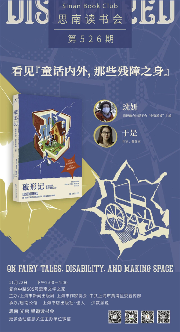 童話與殘障,前者往往象征著圓滿結(jié)局與美好期盼,后者則指向現(xiàn)實(shí)中的諸多考驗(yàn)。加拿大殘障作家、活動(dòng)家阿曼達(dá)·勒迪克,站在兩者的交匯點(diǎn),重新解讀童話中那些未受關(guān)注或未被公正對(duì)待的殘障角色。更重要的是,她進(jìn)一步指出:故事中對(duì)殘障的偏見正是現(xiàn)實(shí)中殘障正義缺失的映射。11月22日下午,我們邀請(qǐng)了殘障社群平臺(tái)“少數(shù)派說”的主編沈妍和作家、翻譯家于是,一起分享關(guān)于“童話內(nèi)外,那些殘障之身”的故事。