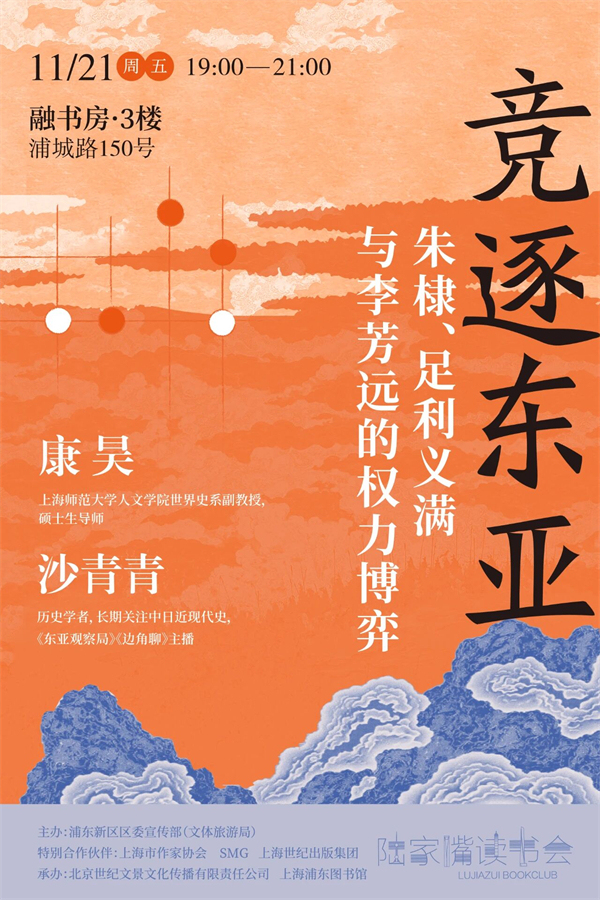 朱棣、足利義滿與李芳遠(yuǎn)——一位需要證明合法性的大明皇帝,一位需要鞏固實(shí)力的日本將軍,一位需要保障生存的朝鮮國王,三位“狠人”統(tǒng)治者,在歷史的同一時(shí)期相遇。11月21日晚,陸家嘴讀書會(huì)邀請(qǐng)到上海師范大學(xué)人文學(xué)院世界史系副教授、碩士生導(dǎo)師,亞洲文明研究中心副主任康昊老師和歷史學(xué)者、《東亞觀察局》《邊角聊》主播沙青青老師,和讀者一起回到風(fēng)云際會(huì)的十五世紀(jì)初,看三位性格迥異、處境不同的東亞“狠人”,如何在一個(gè)全新的時(shí)代格局中,運(yùn)用各自的政治智慧,展開一場關(guān)于權(quán)力、秩序與生存的終極博弈。