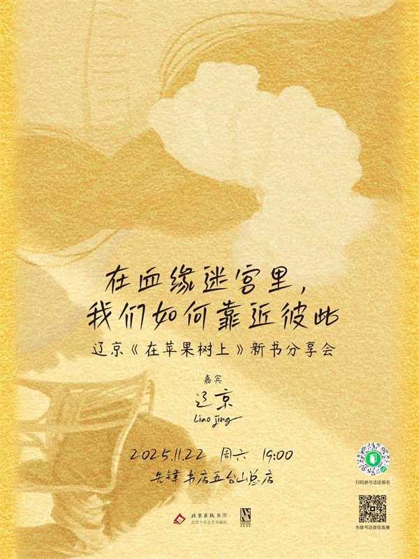 2025寶珀理想國文學(xué)獎(jiǎng)首獎(jiǎng)得主遼京最新的中短篇小說集《在蘋果樹上》是一部深刻映照中國家庭真實(shí)日常的作品。它講述了奶奶的沉默、媽媽的秘密與女兒的困惑——那些關(guān)于我們最親,卻可能最不了解的人的故事。11月22日,作家遼京將做客先鋒書店,一同暢聊《在蘋果樹上》中的家庭故事。
