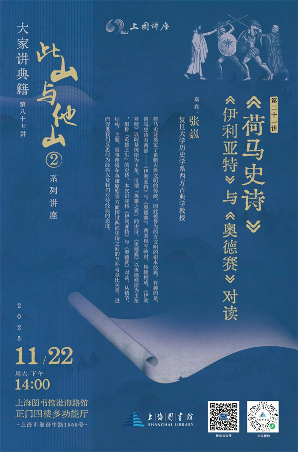 荷馬史詩奠定了希臘古典文明的傳統(tǒng),因此被譽(yù)為西方文明的根本經(jīng)典。有趣的是,荷馬史詩有兩部——《伊利亞特》與《奧德賽》,兩者相互映襯、相輔相成?!兑晾麃喬亍芬园⒒鹚篂橹鹘?,可謂“英雄之死”的史詩,《奧德賽》以奧德修斯為主角,堪稱“英雄之生”的史詩。本次講座將《伊利亞特》與《奧德賽》對(duì)讀,從情節(jié)、結(jié)構(gòu)、主題、敘事邏輯和英雄原型等方面探討兩部史詩之間的互補(bǔ)與競比關(guān)系,進(jìn)而促進(jìn)我們反思何為經(jīng)典以及我們對(duì)待經(jīng)典的態(tài)度。