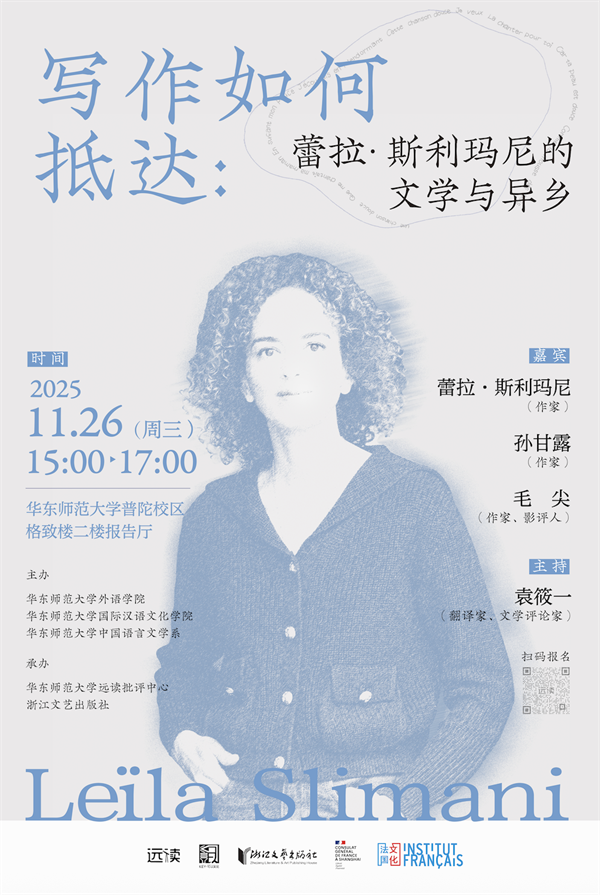 作為年輕一代的龔古爾文學(xué)獎(jiǎng)得主,摩洛哥裔法國小說家蕾拉·斯利瑪尼在寫作上始終聚焦女性困境、跨文化身份與權(quán)力結(jié)構(gòu)等現(xiàn)實(shí)議題,關(guān)心著邊緣的個(gè)體和人的復(fù)雜性。當(dāng)“異鄉(xiāng)”不再只是地理空間的他處,而成為一種普遍而持續(xù)的精神處境,寫作如何成為平衡逃離與抵達(dá)、溝通他者與自我的通道?11月26日,作家蕾拉·斯利瑪尼受邀做客華師大,與作家孫甘露,翻譯家、文學(xué)評(píng)論家袁筱一,作家、影評(píng)人毛尖,圍繞她的小說創(chuàng)作,共談文學(xué)在時(shí)代、語言與地域之間的流動(dòng)。