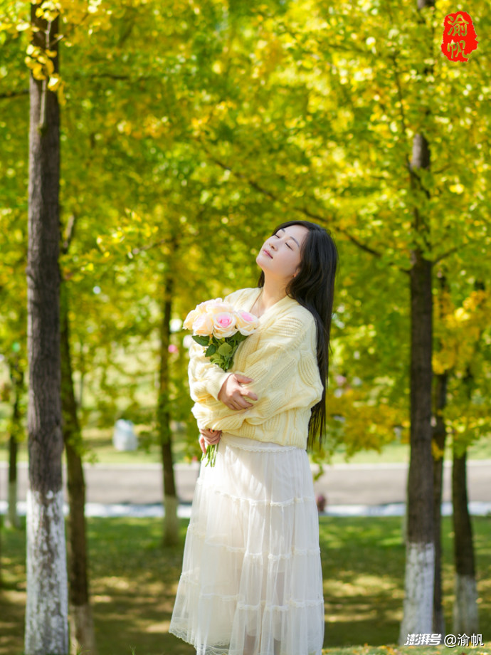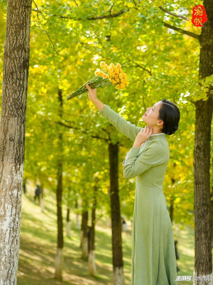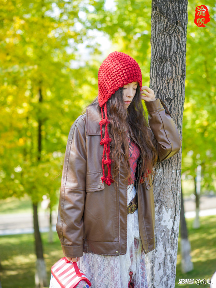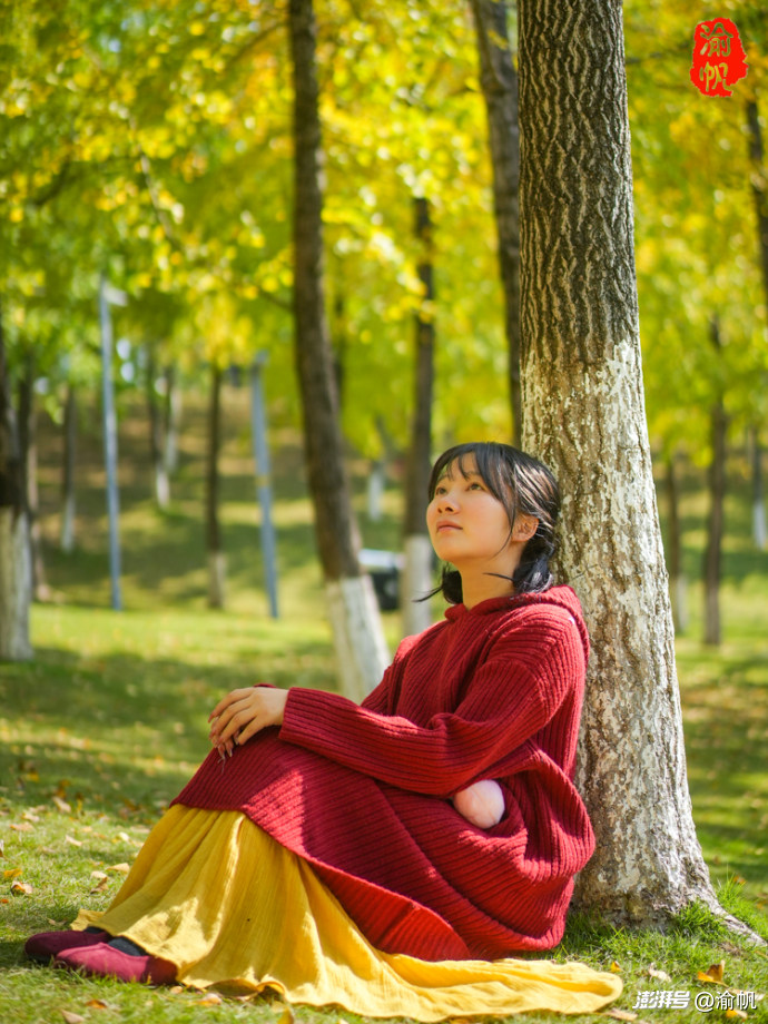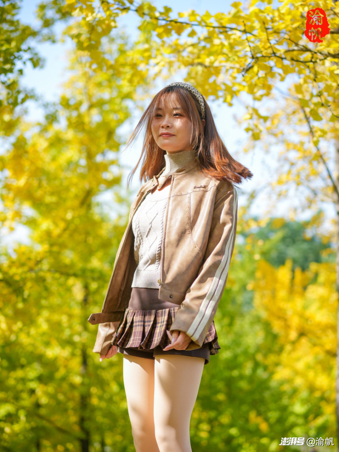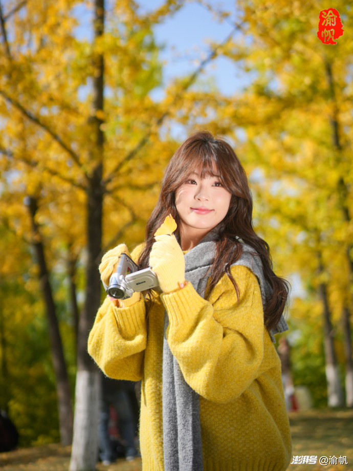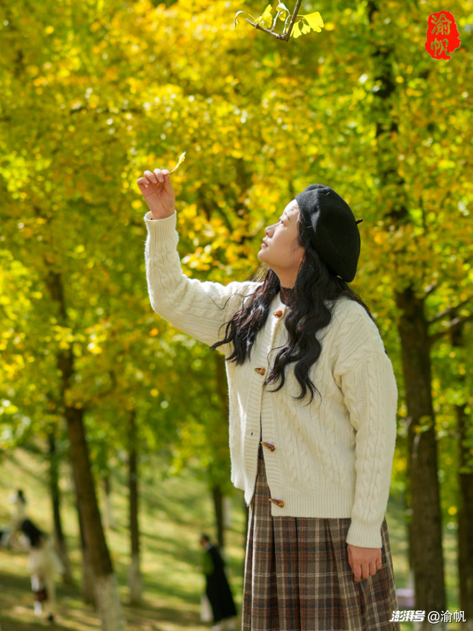 作為常年拍風(fēng)景的攝影師,渝帆在這里也給大家分享幾個(gè)出片小技巧。穿搭上,首選白色、燕麥色、紅色這類色系,毛衣、大衣、針織開衫都很合適,再搭個(gè)貝雷帽、圍巾或珍珠耳環(huán),氛圍感直接拉滿;切記別選亮黃色,不然容易和銀杏融為一體,丟了焦點(diǎn)。
