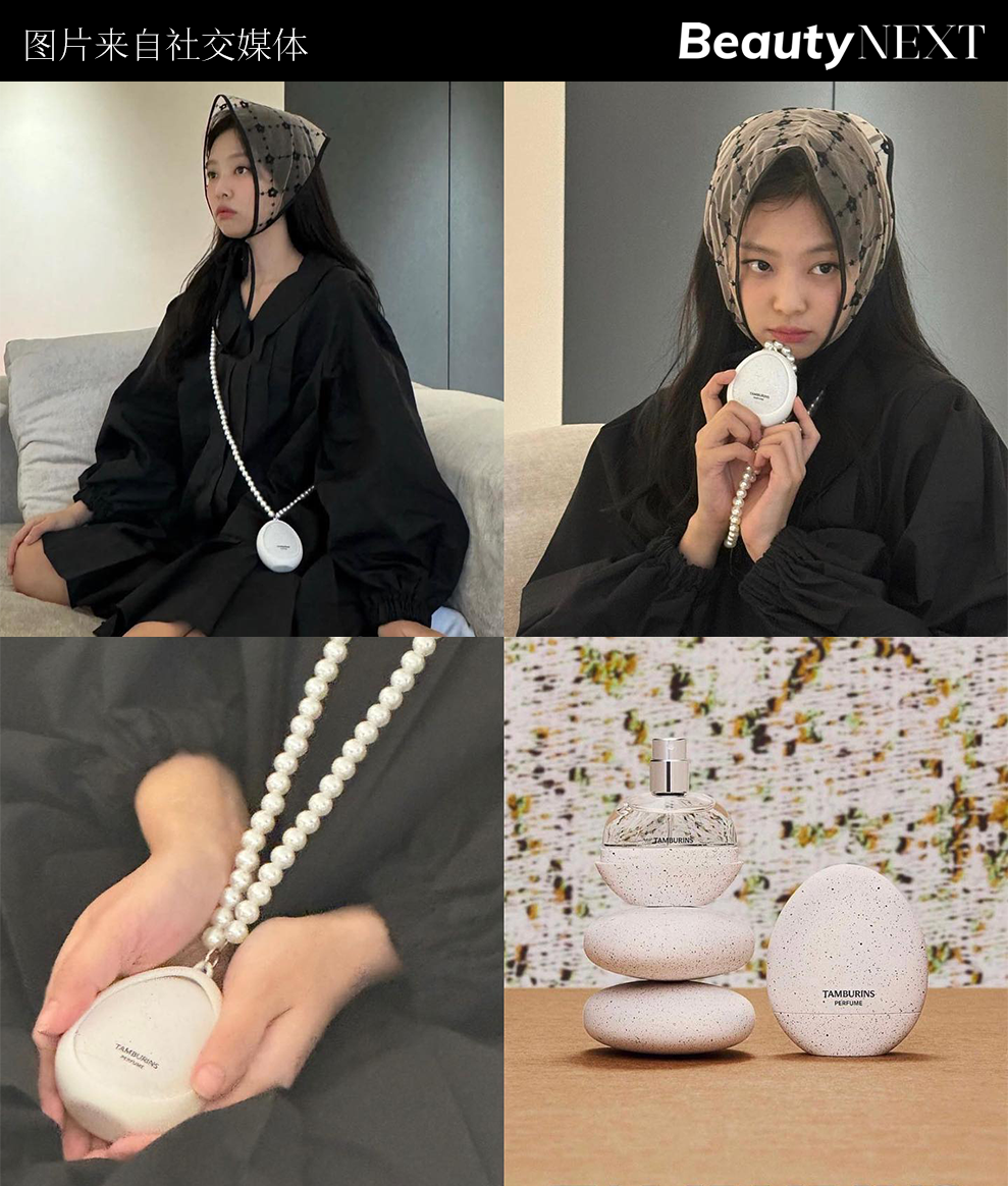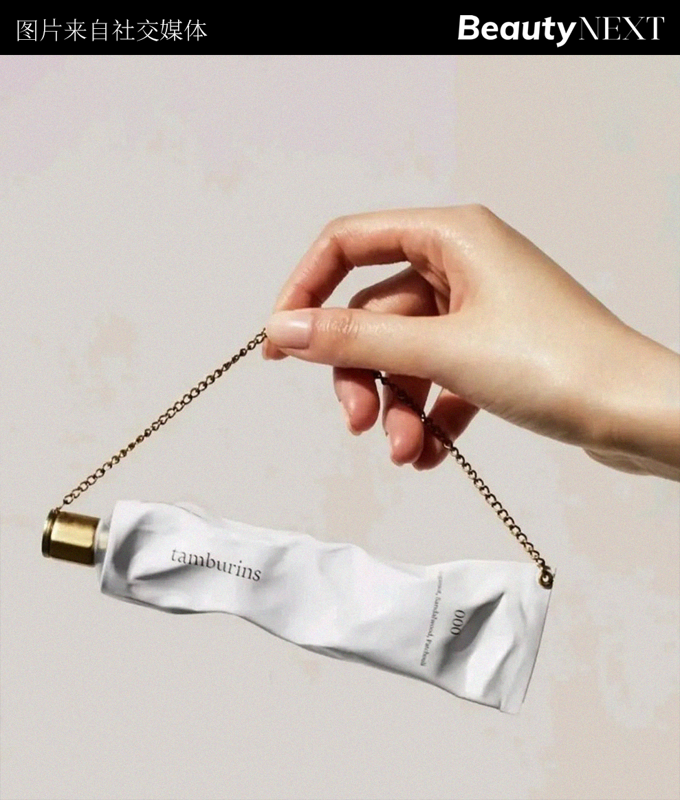 為放大社媒影響力,F(xiàn)wee還將其唇頰兩用啫喱罐與隨機(jī)顏色的鑰匙扣組成套裝,這種開(kāi)盲盒的組合售賣方式在TikTok等社交媒體平臺(tái)上引起了轟動(dòng);更不用說(shuō)Gentle Monster的“姊妹”品牌Tamburins,已經(jīng)打造出鏈條護(hù)手霜、Jennie同款珍珠鏈條蛋型香氛和最新的kiss forever鏈條固體香膏多種配飾爆品……